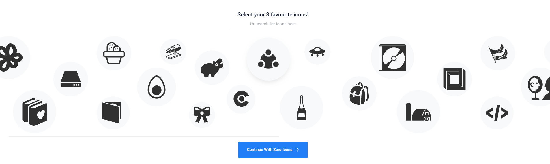 选出示例中你最喜欢的三个图示,如果没有你喜欢的,可尝试在中间的搜索框输入图案名称,找找看 Launchaco 有没有对应的图案设计,但我是直接从它跳出来的图示里选择的,不确定搜索出来的结果多不多。