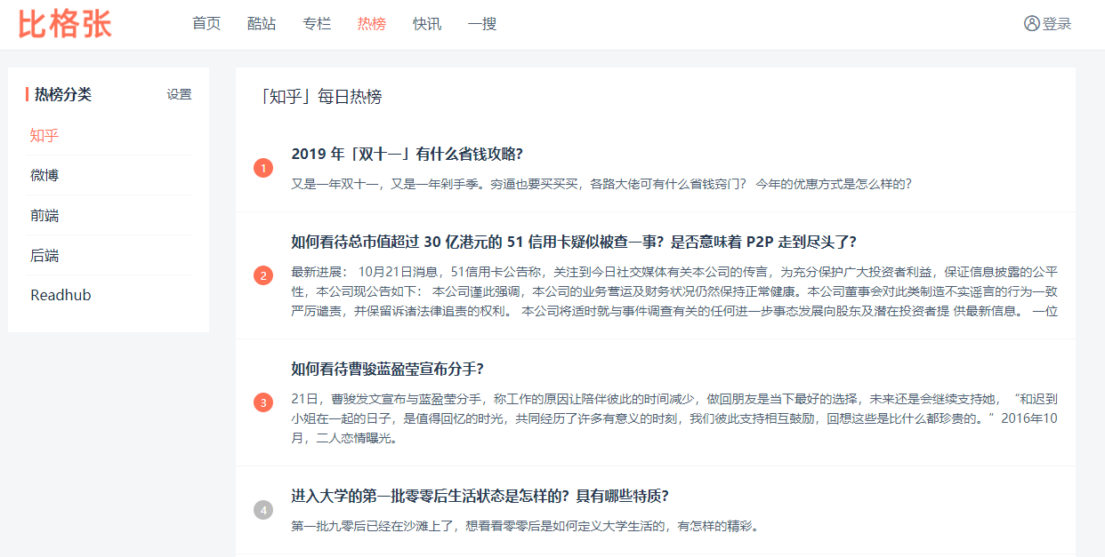 热点分类:热搜、热文、快讯、新闻、科技、游戏、BBS、财经、体育、产品、编程
